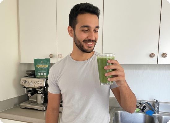 Grass-fed collagen peptides with Vitamin C and a probiotic. Unflavored, zero sugar, and truly halal.
