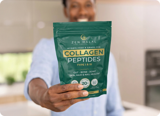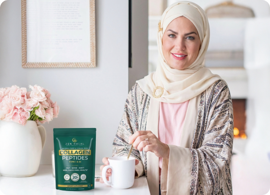 Collagen makes up nearly 30% of the protein in your body - yet most people don’t get enough through diet alone. Zen Halal Collagen is thoughtfully formulated with high-quality collagen peptides, vitamin C, and probiotics to help support what your body naturally needs.